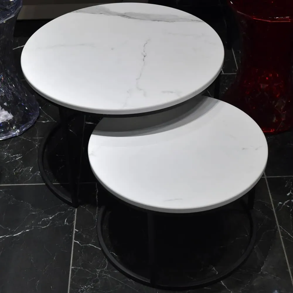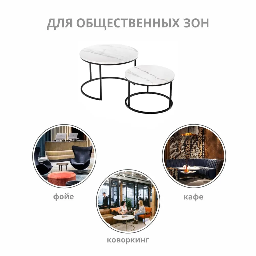 Набор кофейных столиков Bradex Home ов Tango белый мрамор с чёрными ножками, 2шт