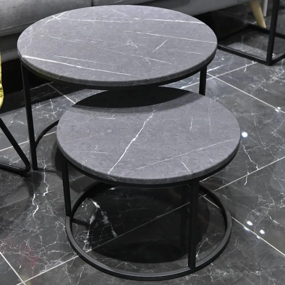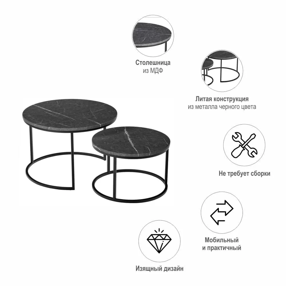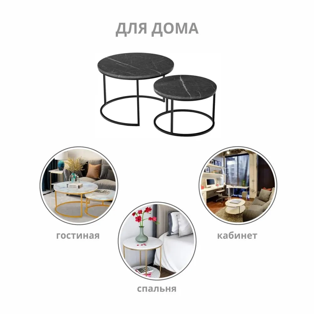 Набор кофейных столиков Bradex Home ов Tango серый мрамор с чёрными ножками, 2шт