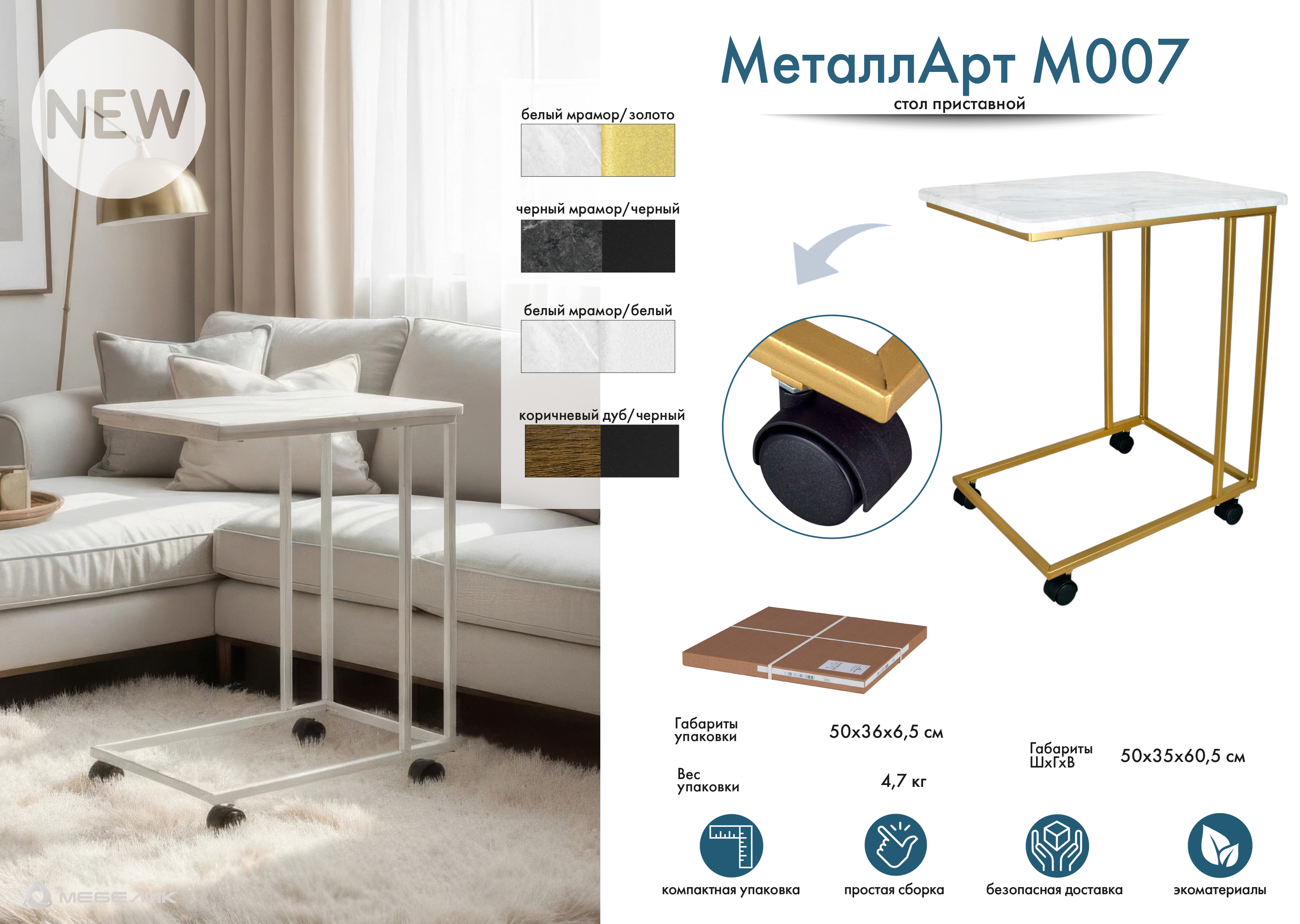 Вы можете купить Стол приставной Мебелик МеталлАрт М007 белый мрамор-золото оптом в нашем магазине, предложим цену с оптовой скидкой.