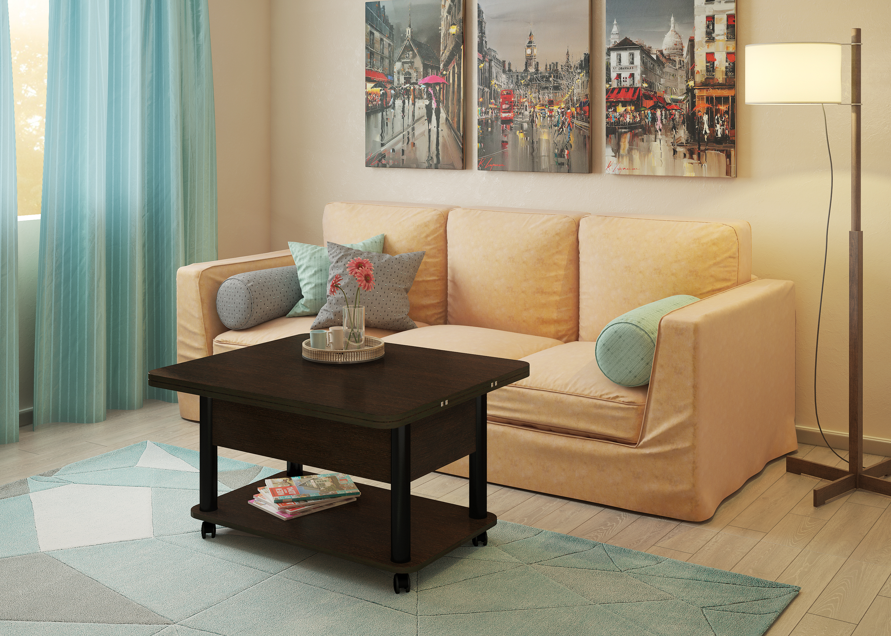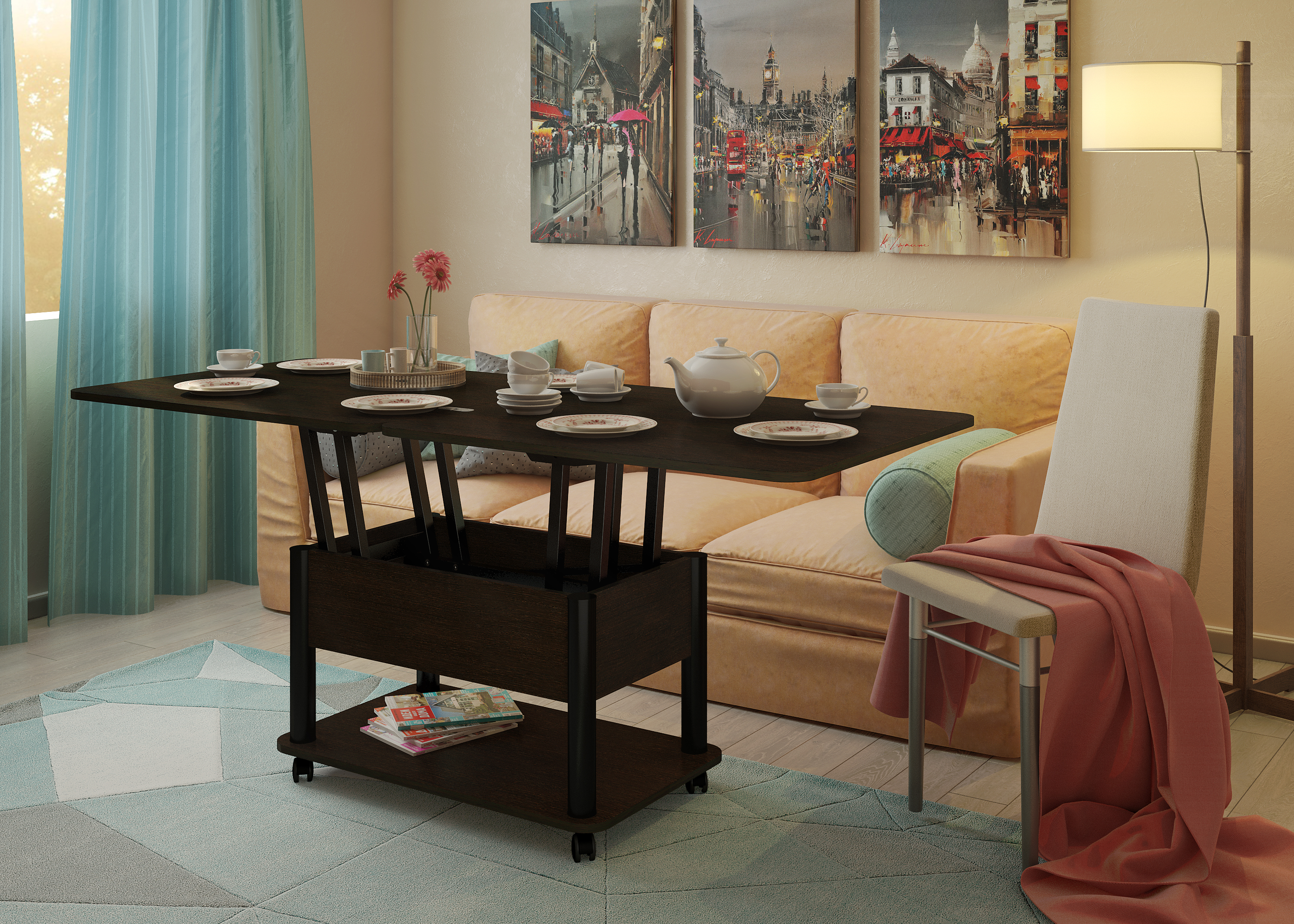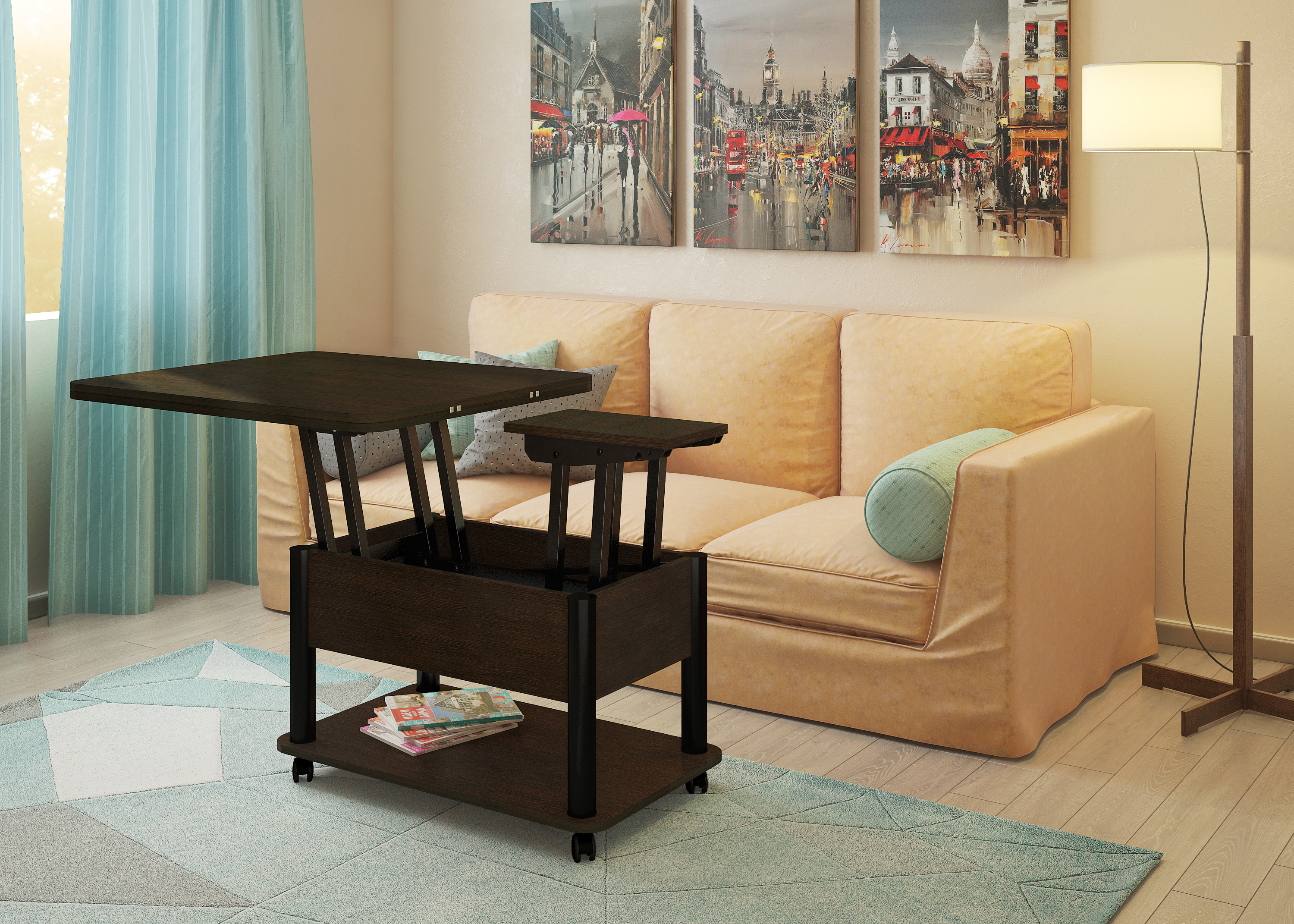 Функциональный журнальный стол легко превращается в полноценный обеденный стол на 6-8 человек. Стол Дебют характеризует усиленная конструкция механизма трансформации и одновременно плавное и легкое раскладывание. Эргономичность за счет оптимальной высоты, размеров, а также зауженное основание обеспечивает максимальное удобство и комфорт. Углы столешницы скруглены, что обеспечивает дополнительную безопасность. Габаритные размеры стола (см): в сложенном виде: Длина: 86 Ширина: 72 Высота: 48,8 В разложенном виде: Длина: 172 Ширина: 72 Высота: 73,3 Материалы: ЛДСП / МеталлХарактеристики