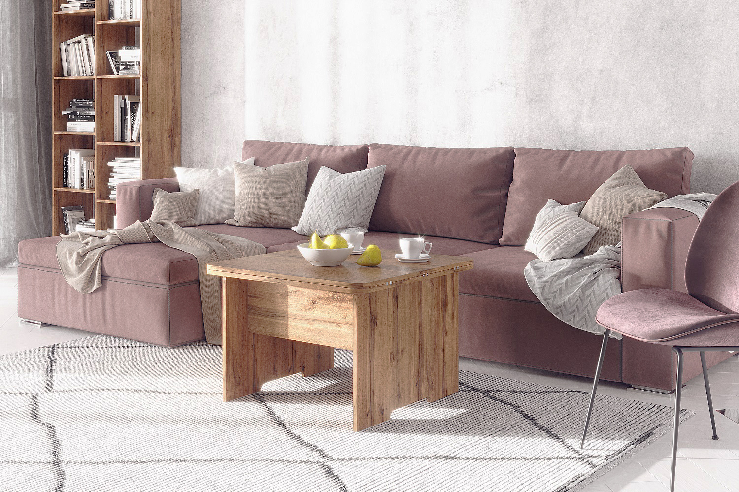 Функциональный журнальный стол легко превращается в полноценный обеденный стол на 6-8 человек. Стол Дебют характеризует усиленная конструкция механизма трансформации и одновременно плавное и легкое раскладывание. Эргономичность за счет оптимальной высоты, размеров, а также зауженное основание обеспечивает максимальное удобство и комфорт. Углы столешницы скруглены, что обеспечивает дополнительную безопасность. Габаритные размеры стола (см): в сложенном виде: Длина: 72 Ширина: 72 Высота: 49,7 В разложенном виде: Длина: 144 Ширина: 72 Высота: 73,4 Материалы: ЛДСП / ЛМДМХарактеристики
