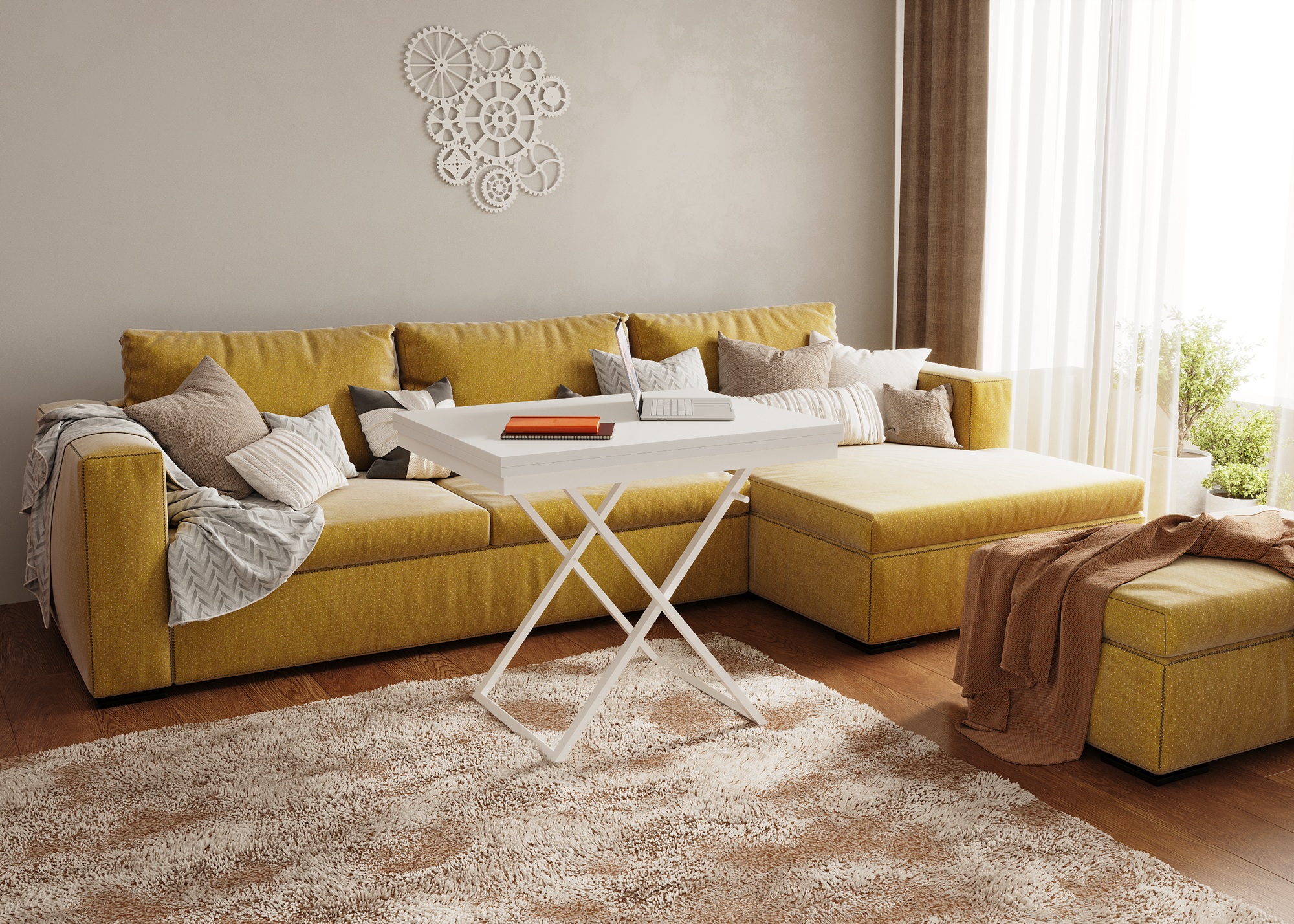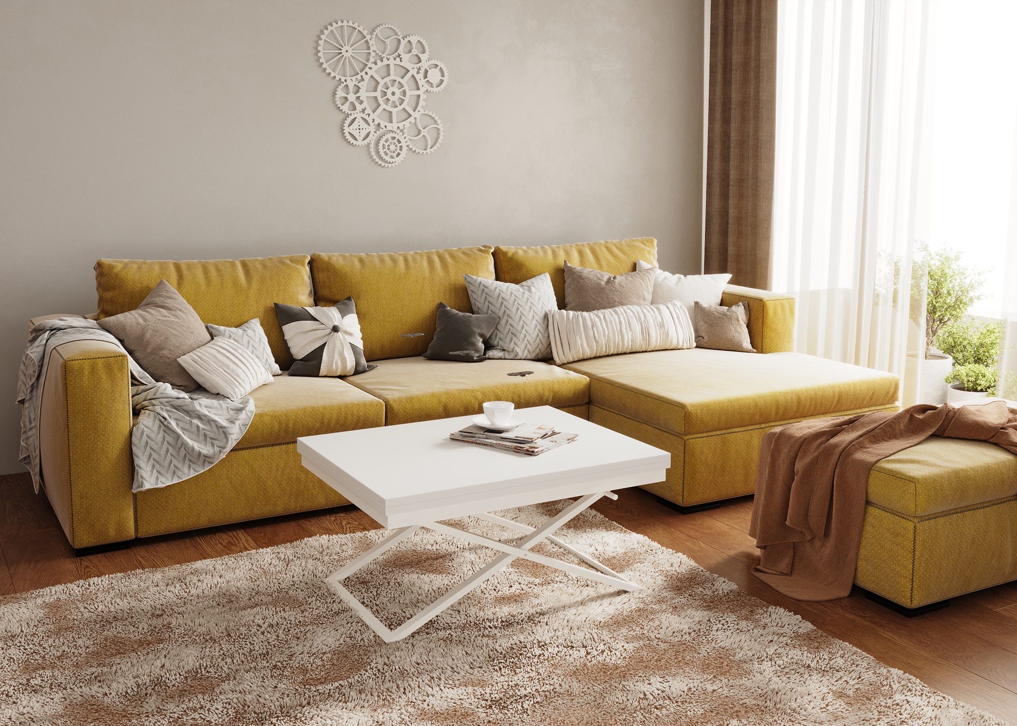 Журнальный стол - трансформер оснащён удобным и надёжным механизмом трансформации и позволяет легко разложить низкий журнальный столик в полноценный обеденный стол на 6-8 человек. Это прекрасное решение вопроса оптимального использования пространства для современного человека.Характеристики
