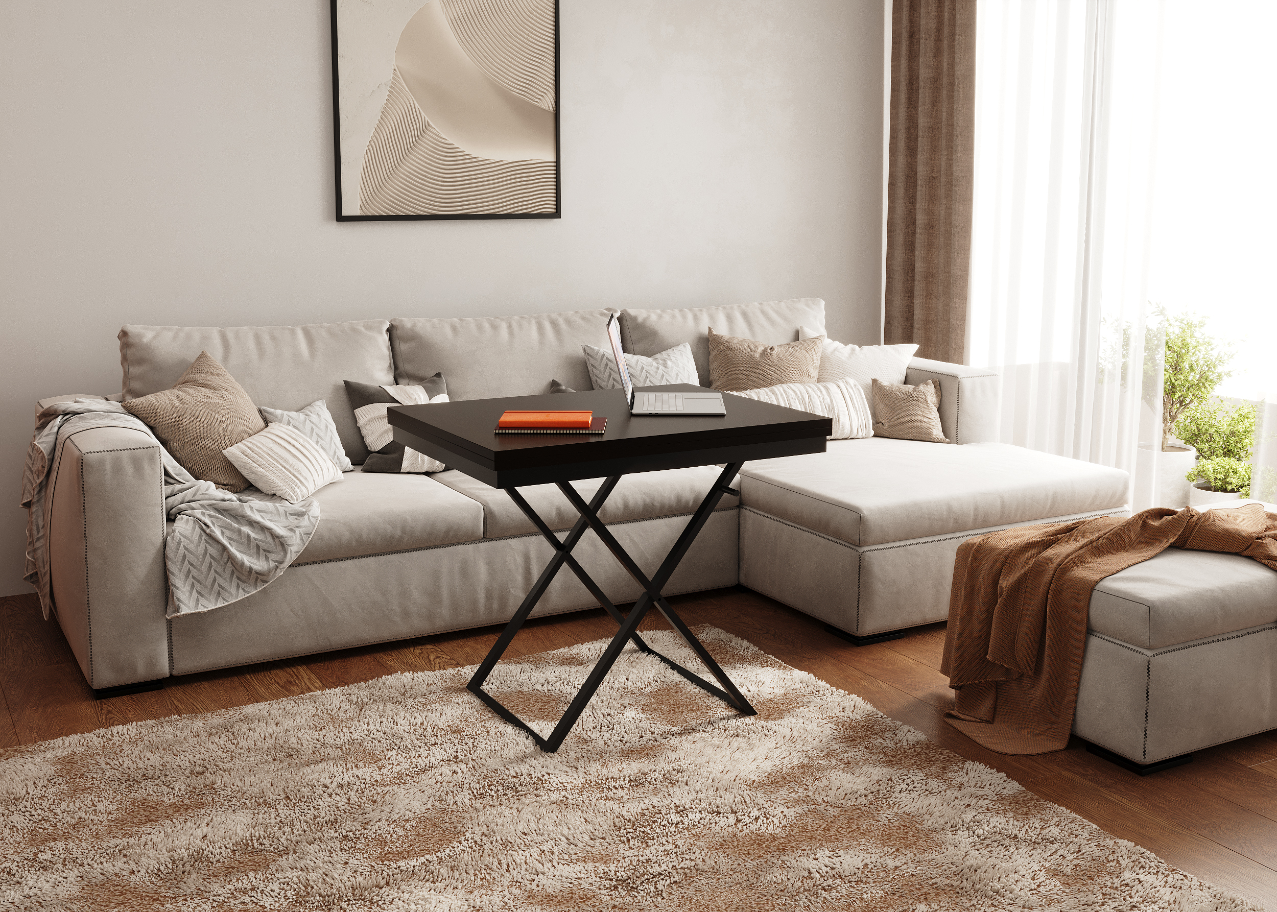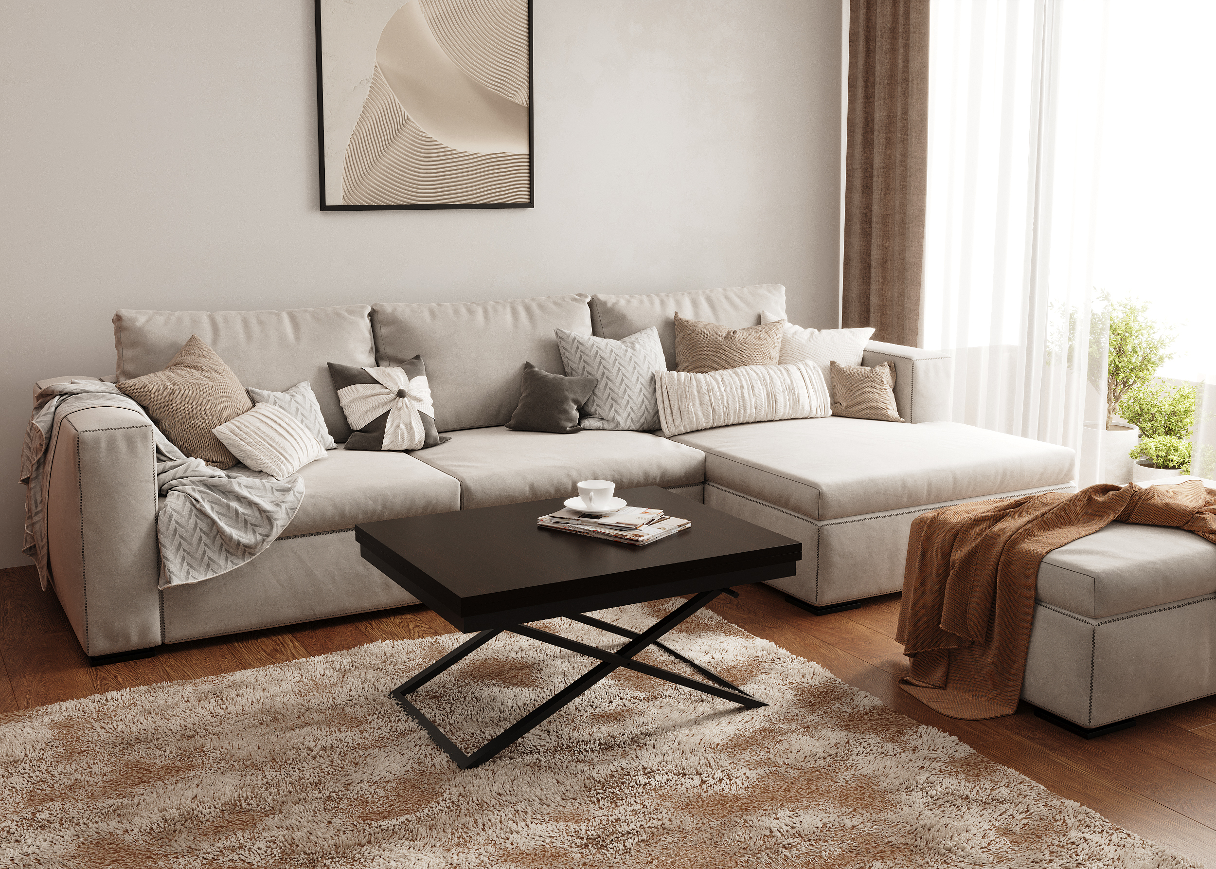 Журнальный стол - трансформер оснащён удобным и надёжным механизмом трансформации и позволяет легко разложить низкий журнальный столик в полноценный обеденный стол на 6-8 человек. Это прекрасное решение вопроса оптимального использования пространства для современного человека.Характеристики