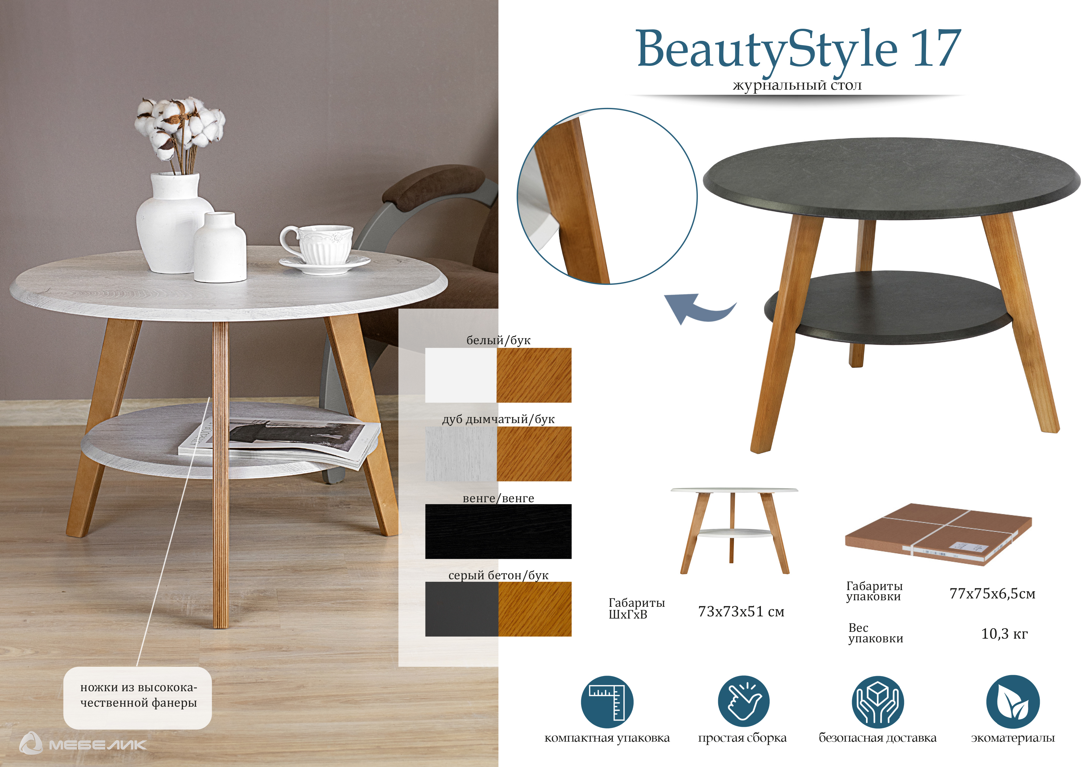 Вы можете купить Стол журнальный Мебелик BeautyStyle 17 серый бетон-бук оптом в нашем магазине, предложим цену с оптовой скидкой.