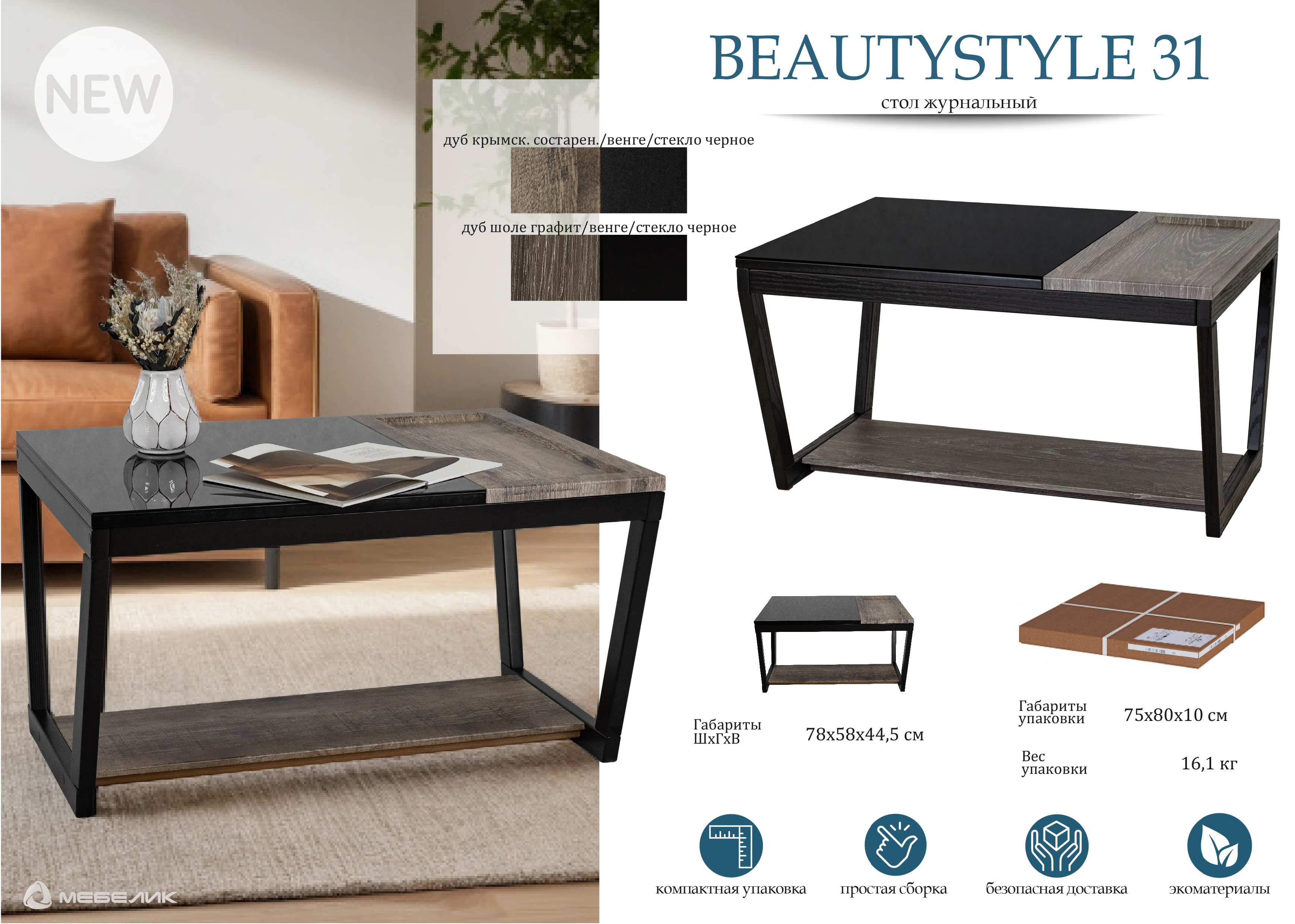 Вы можете купить Стол журнальный Мебелик BeautyStyle 31 дуб шоле графит-венге-стекло черное оптом в нашем магазине, предложим цену с оптовой скидкой.