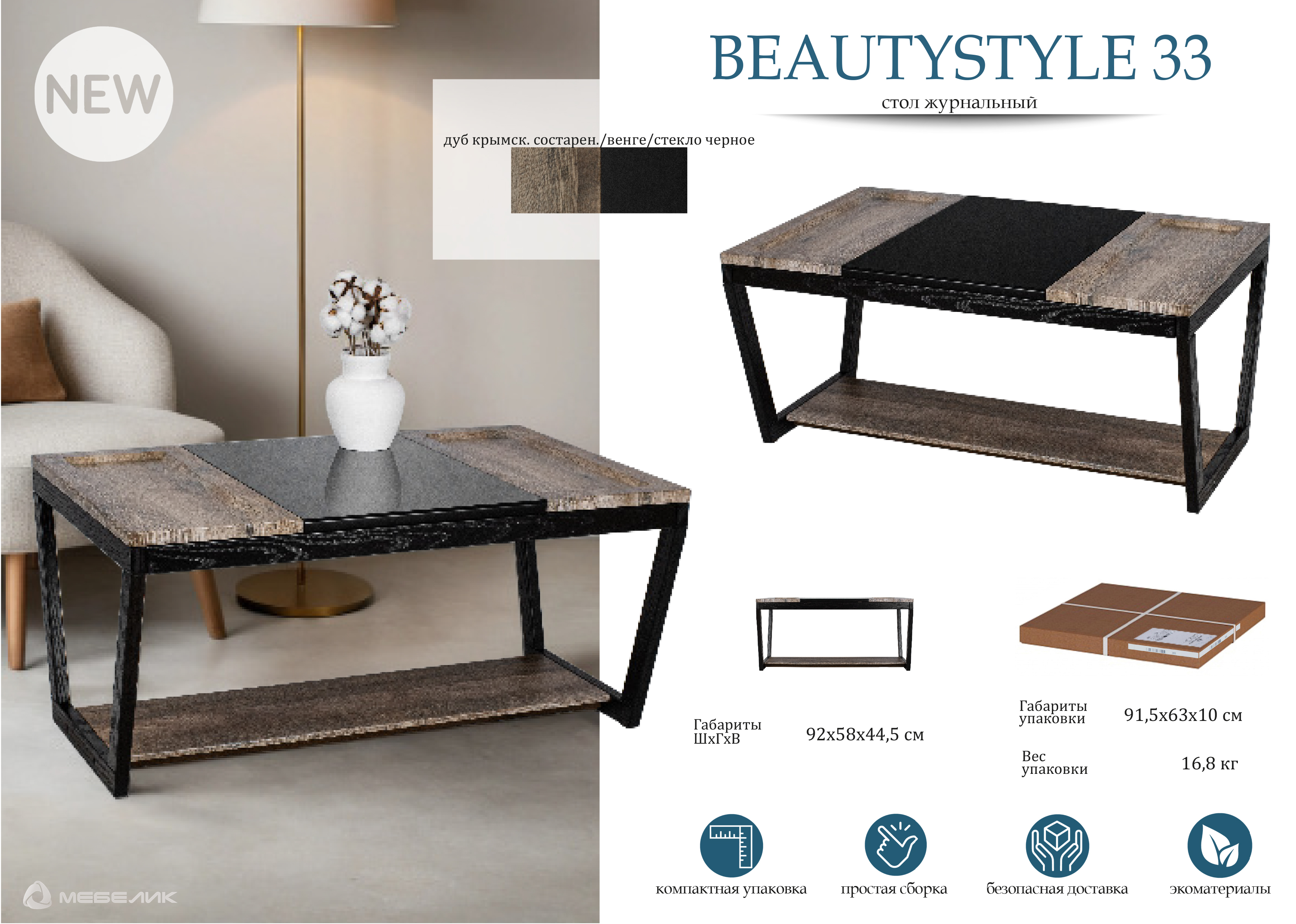 Вы можете купить Стол журнальный Мебелик BeautyStyle 33 дуб крымский состаренный-венге-стекло черное оптом в нашем магазине, предложим цену с оптовой скидкой.
