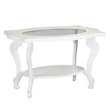 Классический столик в гостиную или спальню Форма стекла перекликается с формой полочки Удобная высота столика Окрашен в цвет белого ясеня и покрыт надежным лаком, прозрачное стекло с матированным рисунком Надежно упакован в одну коробку, легко собирается Предметы серии "Берже" отлично сочетаются друг с другом, составляя набор мебели в классическом стиле ___ Журнальный столик Берже 1 выполнен в классическом стиле. Его ножки и рельефная кромка столешницы изящно изогнуты. Модель прекрасно дополнит традиционный дизайн дома или офиса. Благодаря наличию дополнительной полочки, на поверхности стола помещается множество вещей. Функциональный предмет мебели станет не только полезным, но и стильным акцентом Вашего интерьера. Материалы: мдф, шпон дуба, стекло, массив, эмаль, лак Упаковка: 98х62х8 см, 1место Вес: 13 кг Цвет: белый ясеньХарактеристики