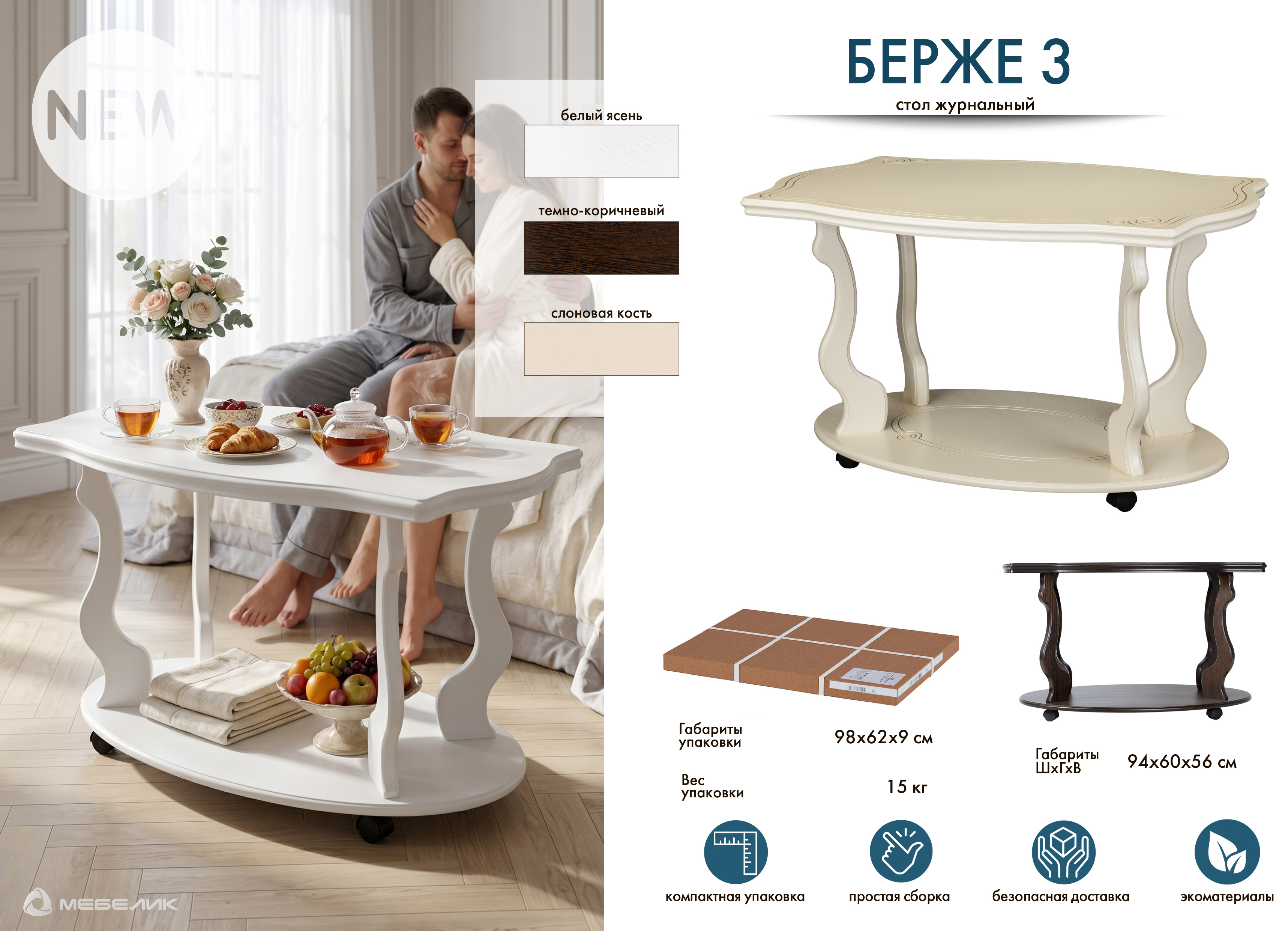 Вы можете купить Стол журнальный Мебелик Берже 3 слоновая кость оптом в нашем магазине, предложим цену с оптовой скидкой.