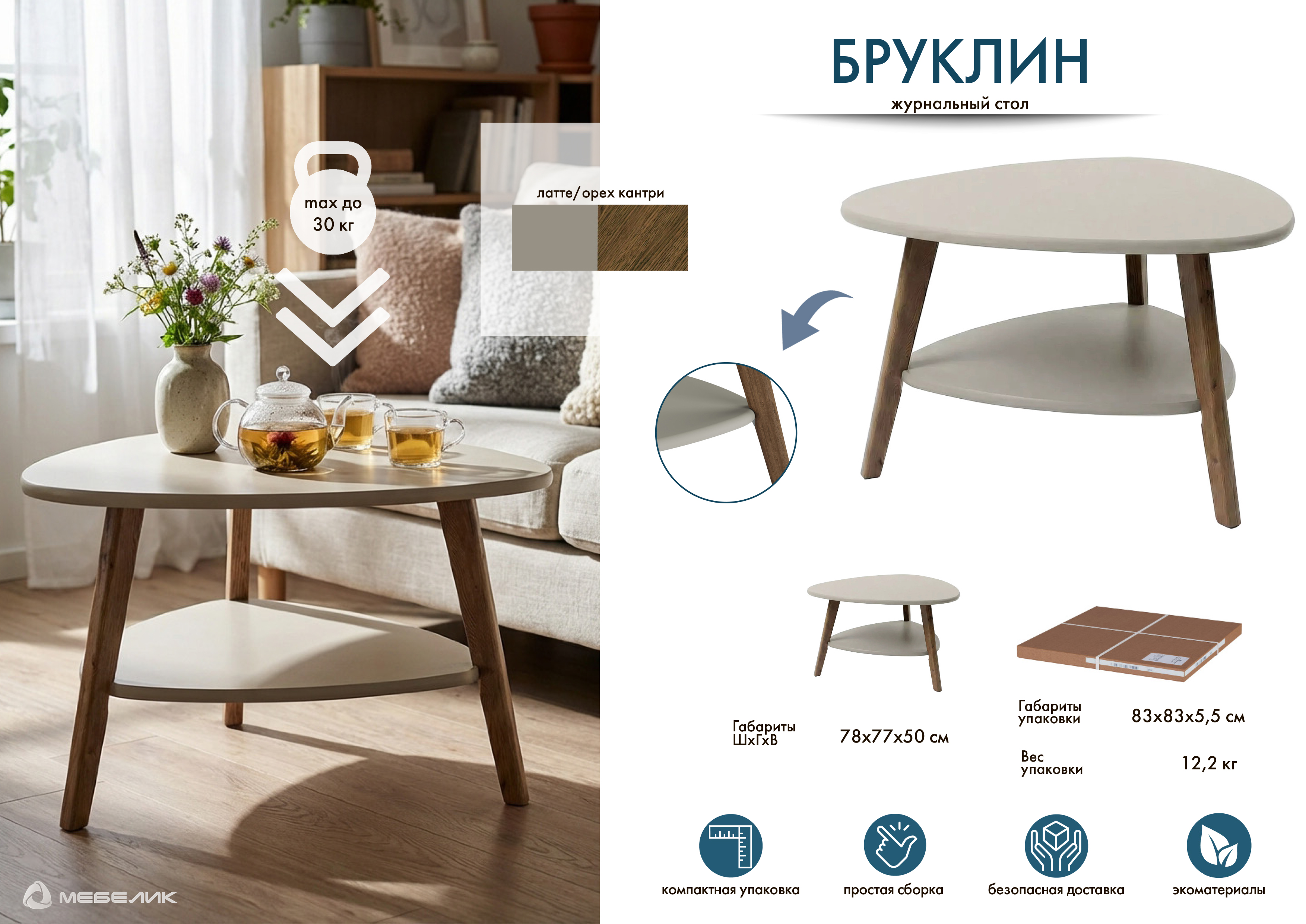 Вы можете купить Стол журнальный Мебелик Бруклин латте-орех кантри оптом в нашем магазине, предложим цену с оптовой скидкой.