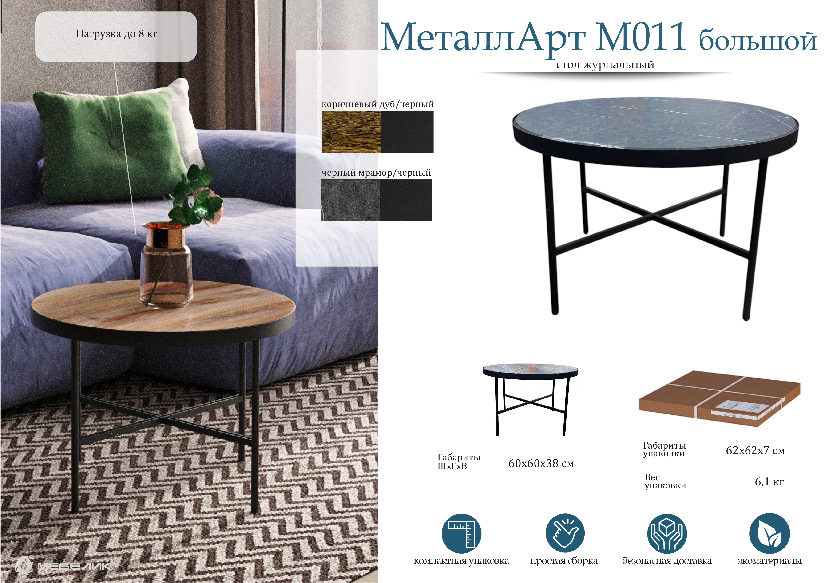 Вы можете купить Стол журнальный Мебелик МеталлАрт М011 БОЛЬШОЙ черный мрамор-черный оптом в нашем магазине, предложим цену с оптовой скидкой.