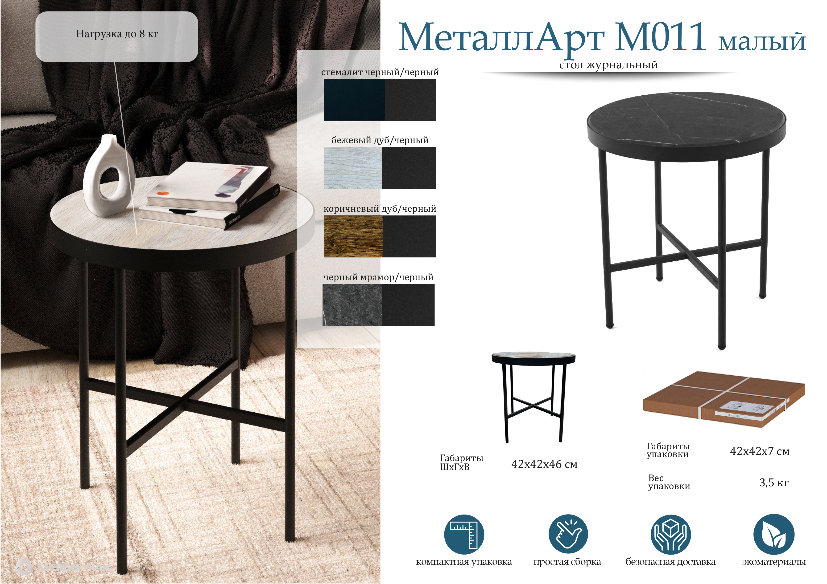 Стол журнальный Мебелик МеталлАрт М011 МАЛЫЙ стемалит черный-черный