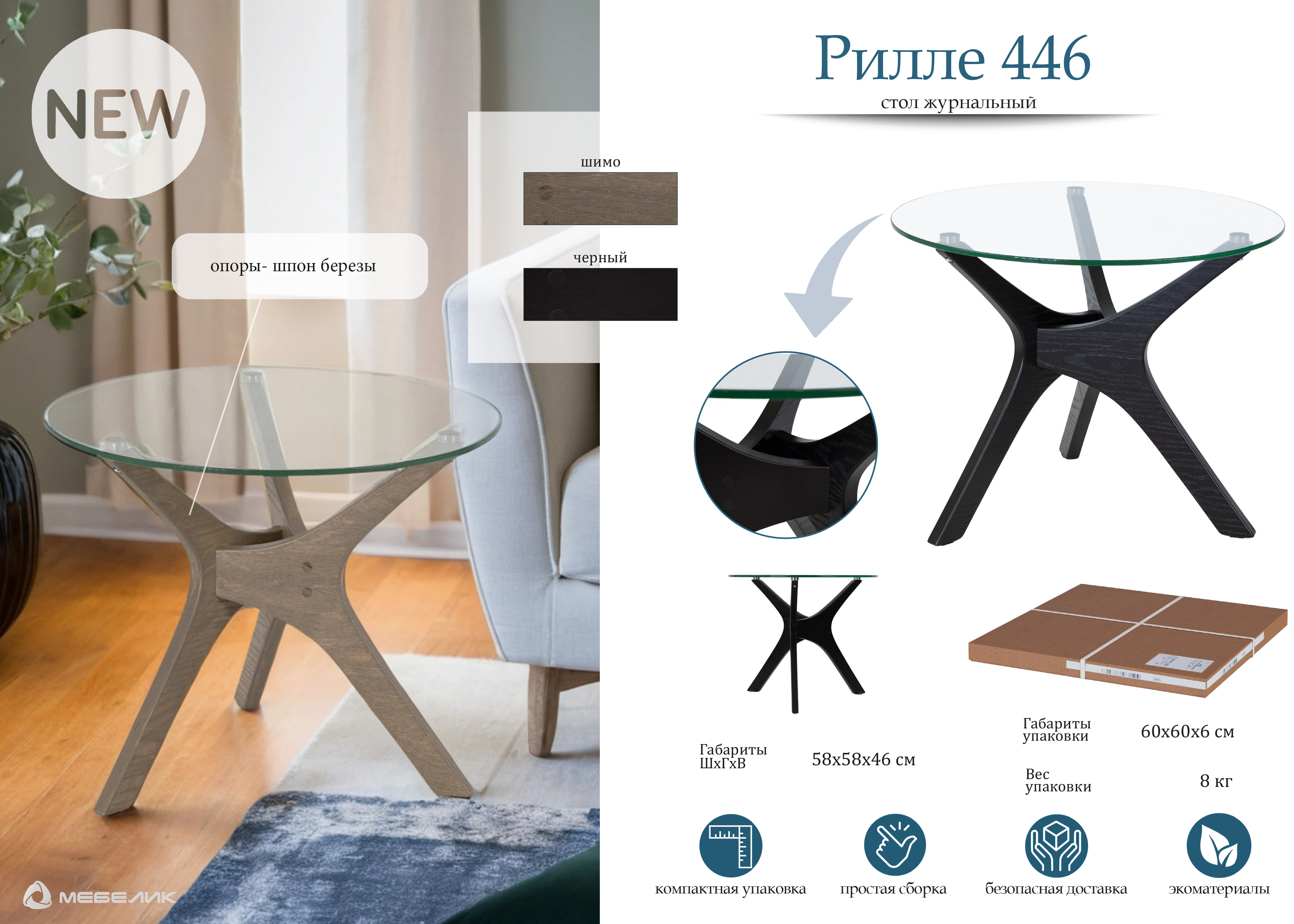 Вы можете купить Стол журнальный Мебелик Рилле 446 шимо-стекло прозрачное оптом в нашем магазине, предложим цену с оптовой скидкой.