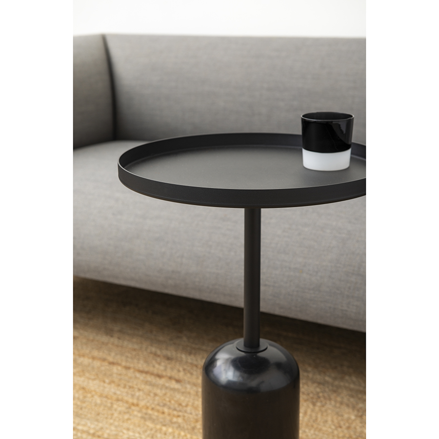 Кофейный столик Lars – прекрасный вариант для дома и кафе. Мебель имеет устойчивое основание из натурального мрамора, которое привносит в минималистичный дизайн нотки изысканности и благородства. Столешница и ножка выполнены из прочной стали, что обеспечивает конструкции практичность и долгий срок службы. Модель великолепно сочетается с различными стилевыми решениями: минимализм, лофт, фьюжн и др.Материалы: столешница и ножка – сталь, основание – мрамор. Максимальная нагрузка - 15 кг. Диаметр: 40 см. Высота: 59 см. Цвет: черный.