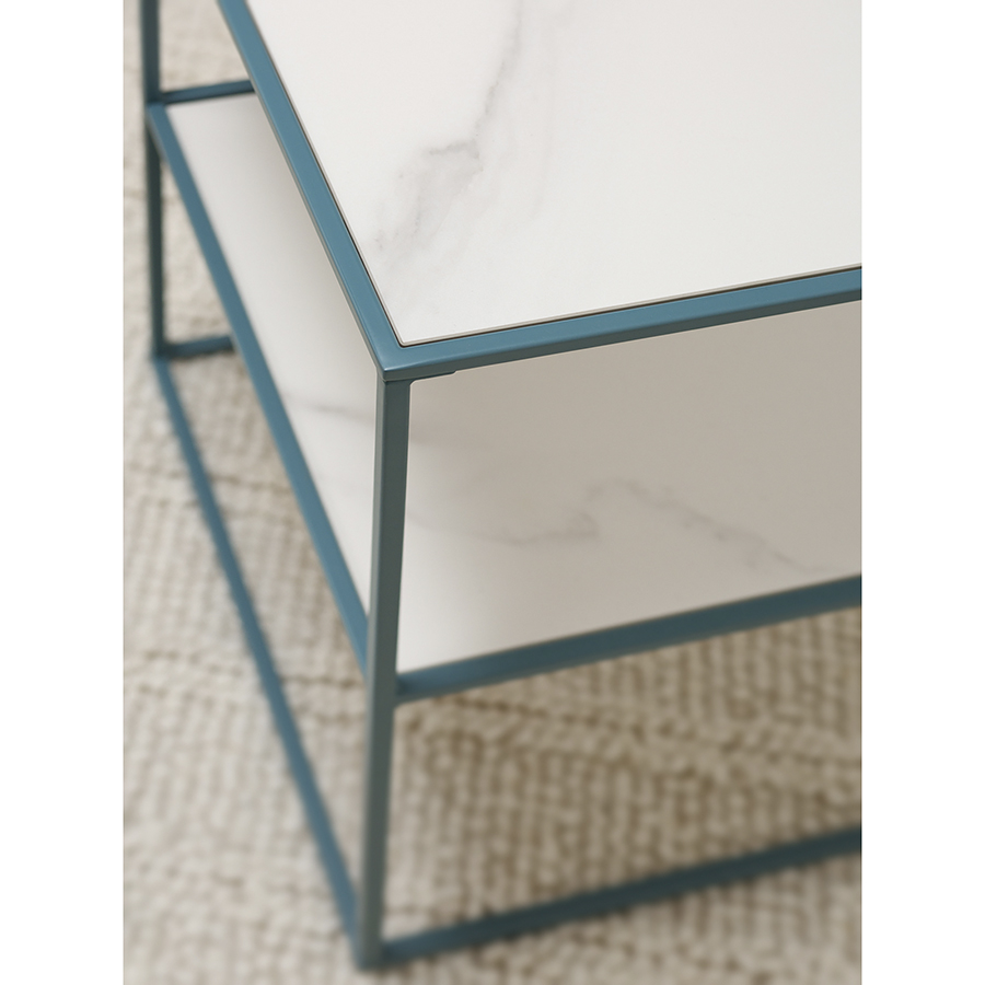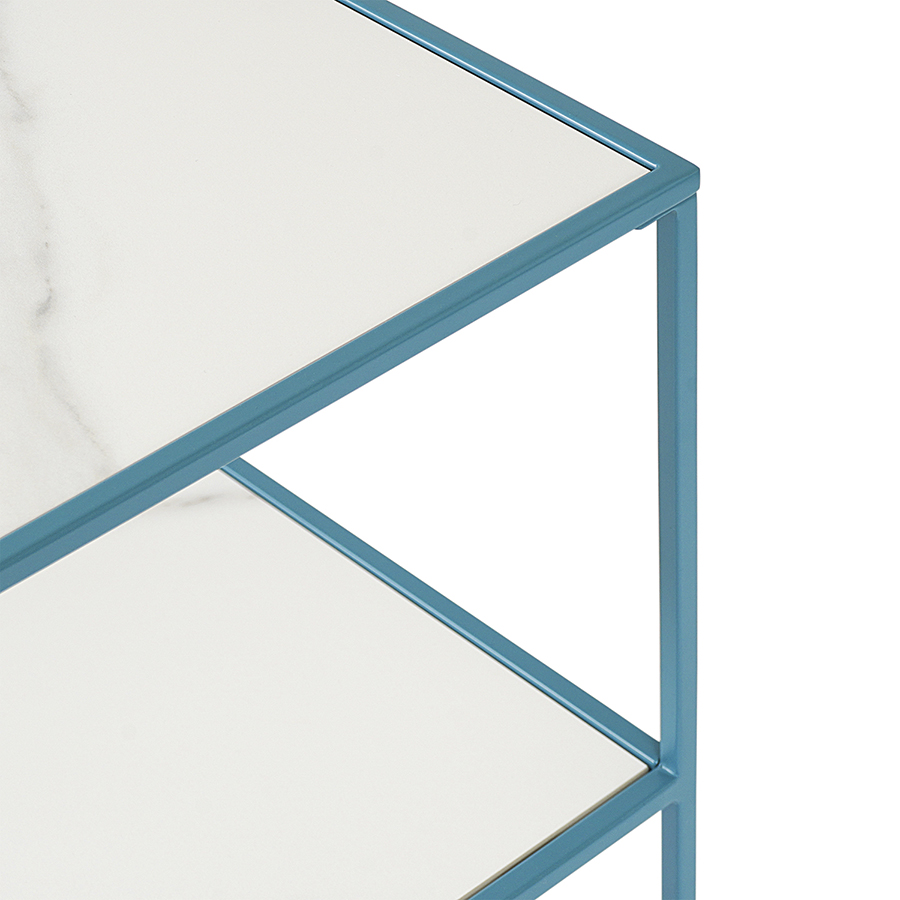Материалы: столешница – керамика, каркас – сталь. Размеры: 38х38х52 см. Цвет: бирюзовый.