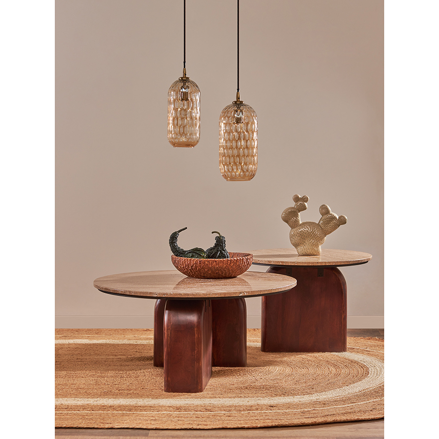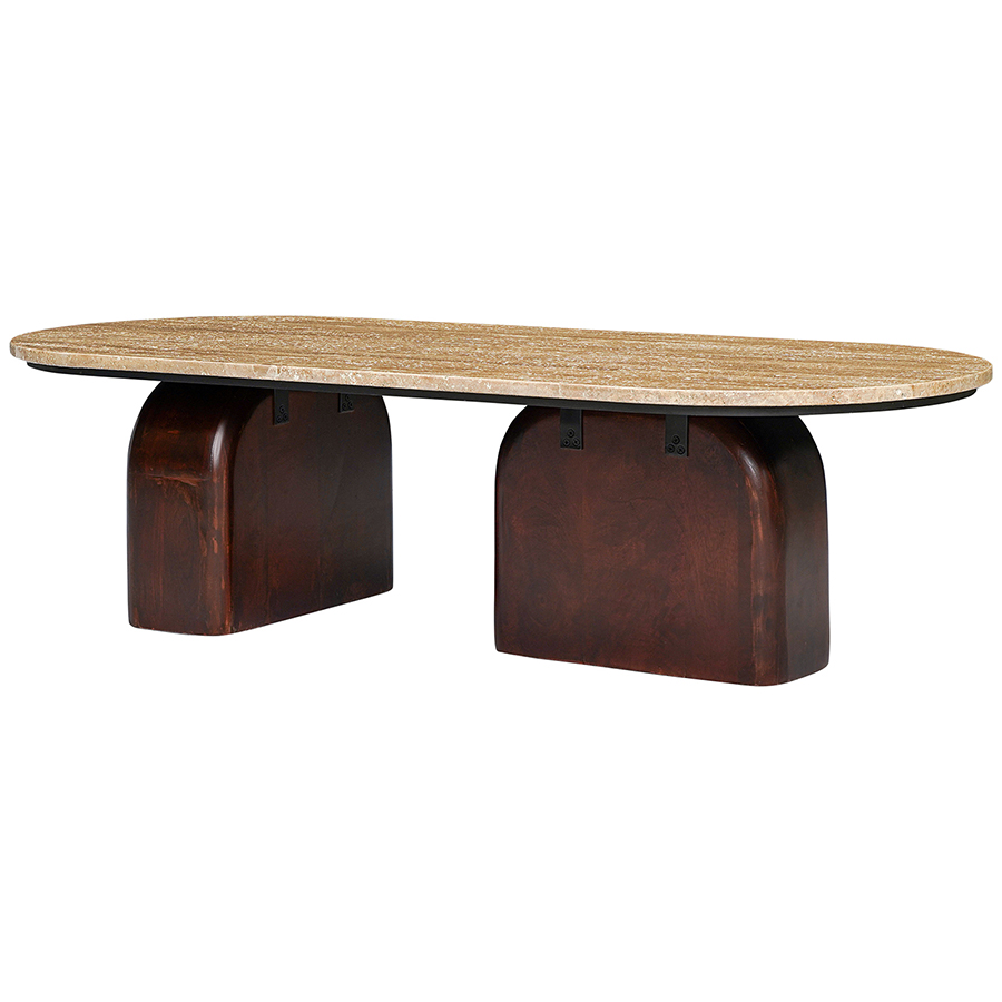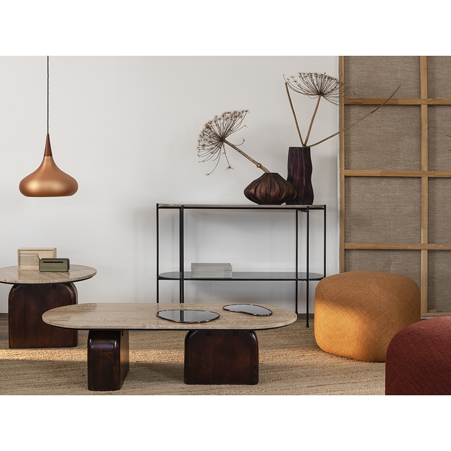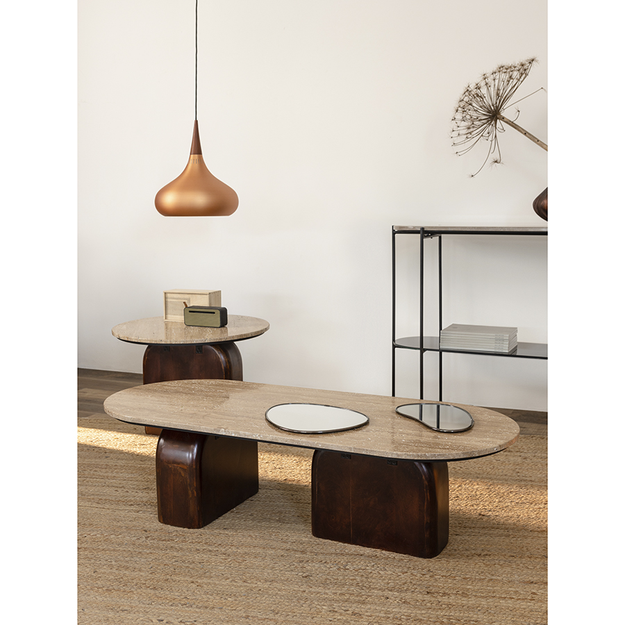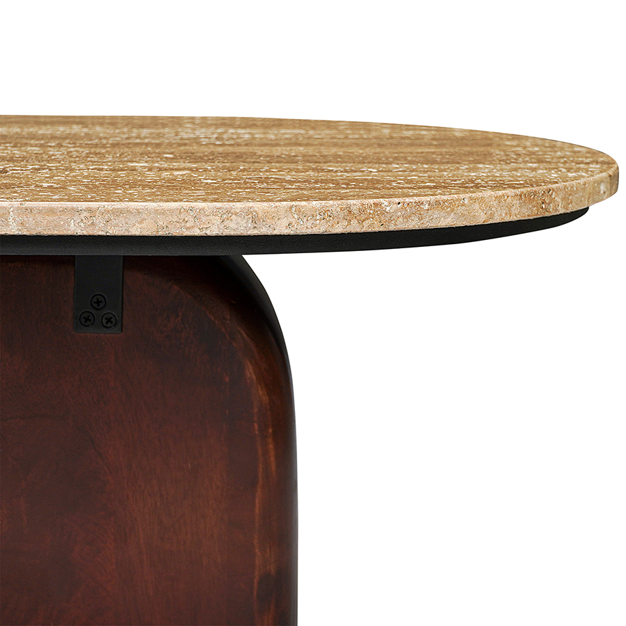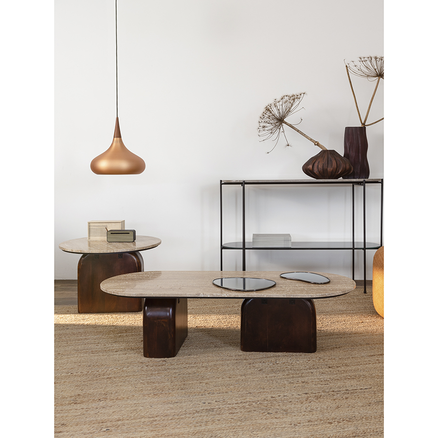- Нейтральность травертина и естественный оттенок древесины позволяют вписать столик в интерьер, оформленный в любой цветовой гамме.