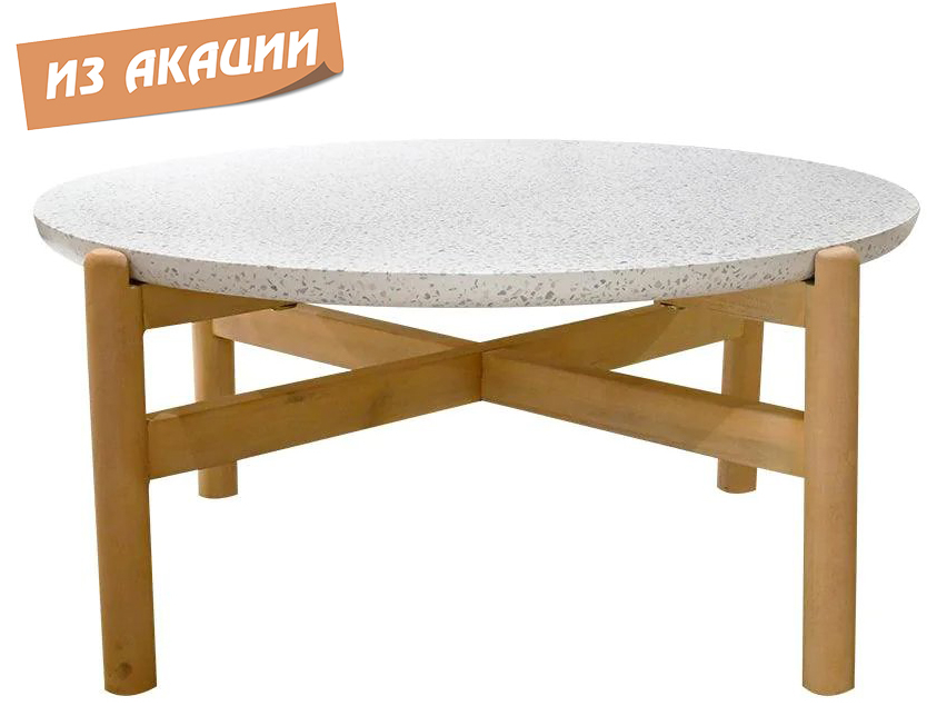 Talara - это современный, но неподвластный времени кофейный столик с каменной столешницей и деревянным каркасом - это идеальный выбор для любого сада, патио, террасы или зимнего сада. Благодаря своему простому стилю и использованию натурального дерева столик легко впишется как в современный, так и в традиционный сад. Изготовленный из высококачественной АКАЦИИ, столик Talara прочный и долговечный. Древесина, одобренная FSC, обладает естественной водонепроницаемостью, поэтому вы можете хранить изделие на открытом воздухе круглый год. Цвет натуральной твердой древесины представляет собой натуральный цвет с мелкой текстурой, придающий древесине приятный теплый вид. Особенности: Материал ножек - АКАЦИЯ, отделка экомаслом тик Light #01A. Древесина, из которой изготовлена мебель, имеет сертификацию FSC (Forest Stewardship Council) - гарантия качества и происхождения древесины. Знак FSC - показатель того, что продукция происходит из леса, в котором ведется экологически и социально ответственное лесное хозяйство. Благодаря своей долговечности, прочности и устойчивости к вредителям эта древесина была создана для изготовления садовой мебели. Страна происхождения древесины: Вьетнам, Малайзия. Средняя плотность древесины: 550 кг/м3. Столешница - искусственный камень Terrazzo. Анодированная фурнитура из нержавеющей стали. Столик поставляется в разобранном виде, необходима сборка. Открыть инструкцию по уходу. Вся деревянная мебель должна обрабатываться специальным маслом или пропиткой минимум 1 раз в 6 месяцев (в условиях высокой влажности обработку следует проводить чаще). Для данной мебели не рекомендуются резкие температурные перепады. Мебель из дерева акации должна использоваться только под навесом. Дерево является натуральным материалом, поэтому любые трещины, неравномерные природные рисунки, различность оттенков ‐ являются естественным процессом, который вызван температурными изменениями или влажностью.Характеристики