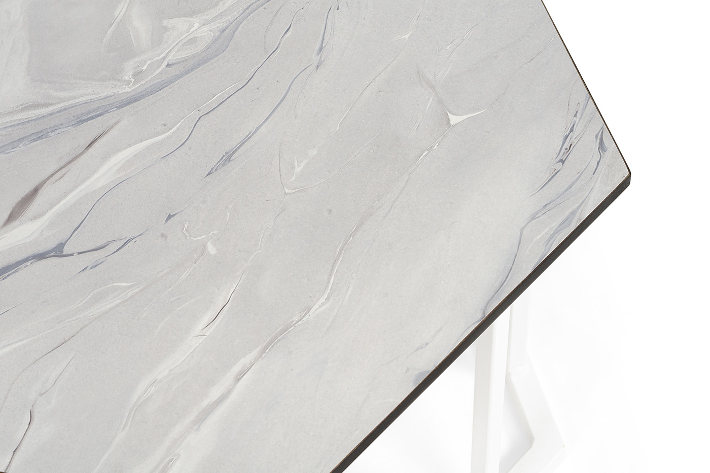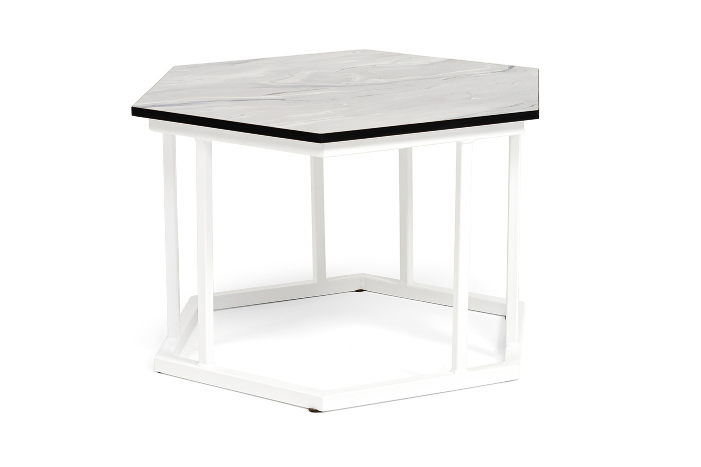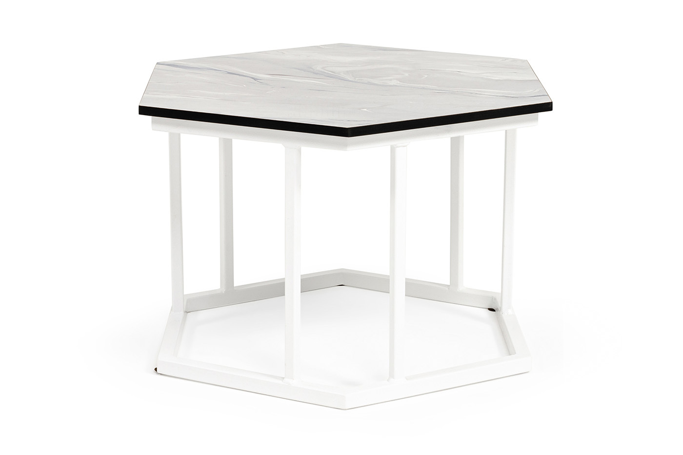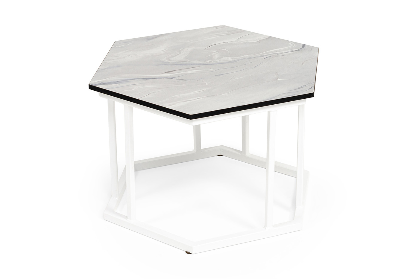 "Женева" интерьерный стол из HPL шестиугольный, D50, H35, цвет "мрамор пепел", каркас из стали белый муар | |