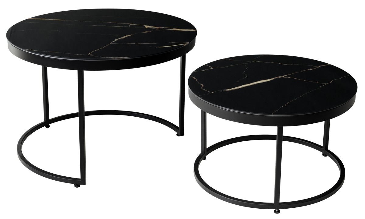 Комплект журнальных столиков Эрвин обсидиан, стекло/ черный