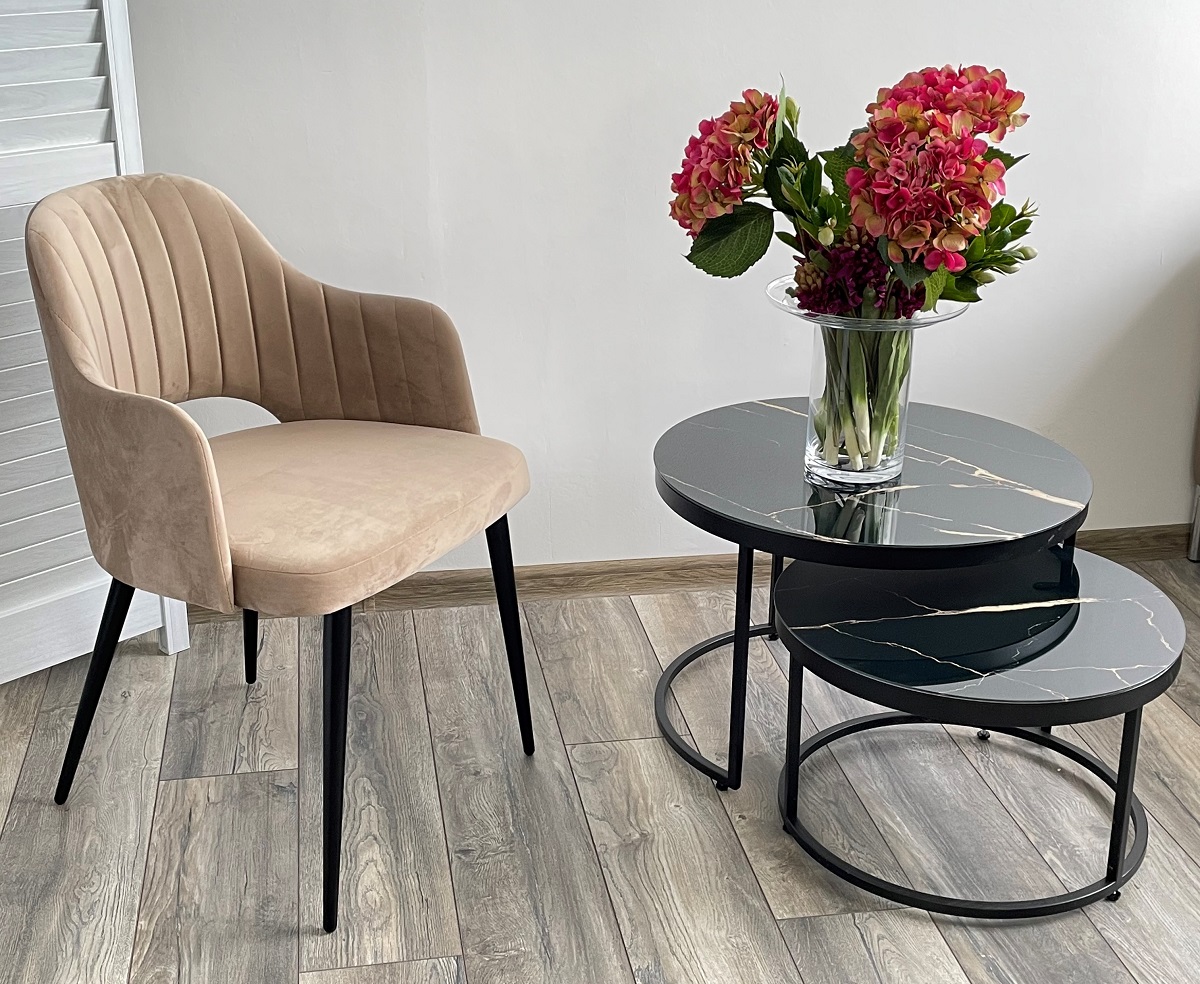 - комплект из 2-х столиков, диаметр 50см/ высота 31см, диаметр 60см/ высота 41см.