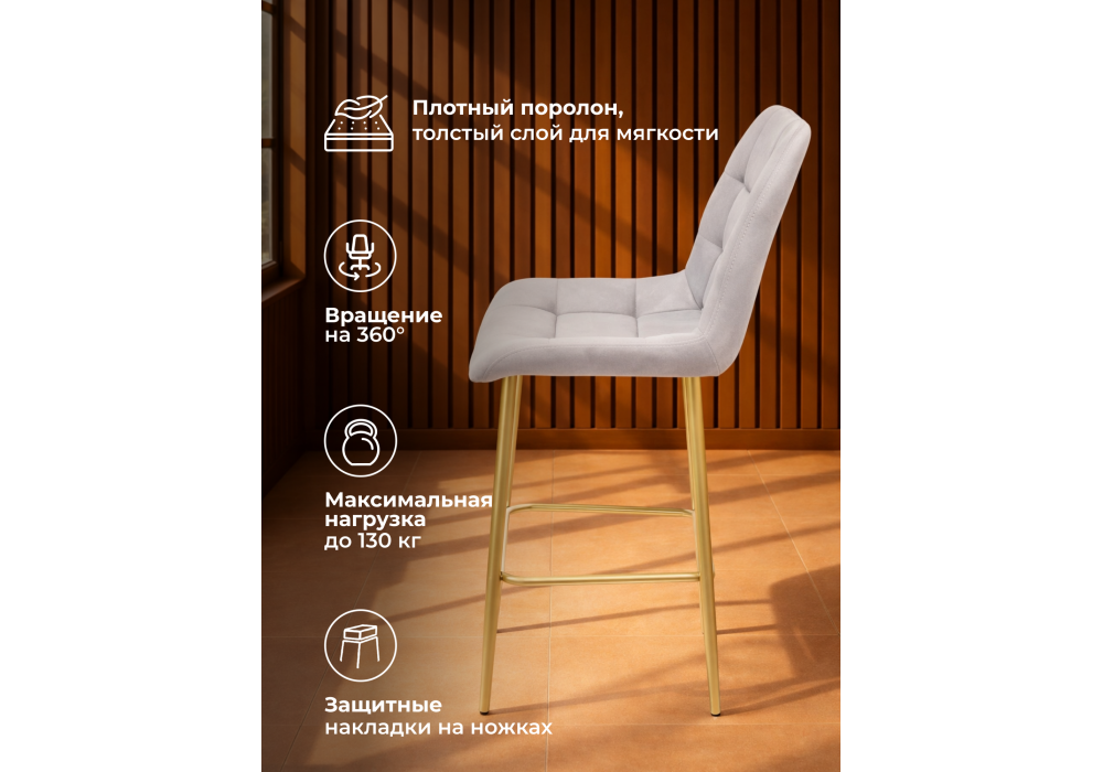 Барный стул WoodVille Челси 360 светло-серый (zd 960) / золотой np