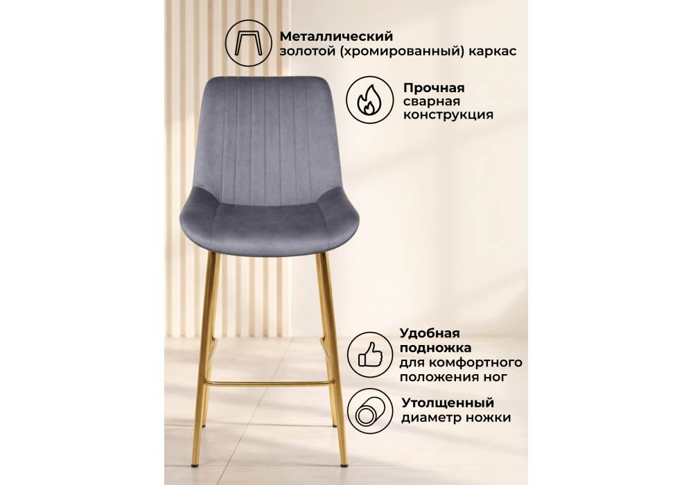 Барный стул WoodVille Седа 360 темно-серый (zd 995) / золотой np
