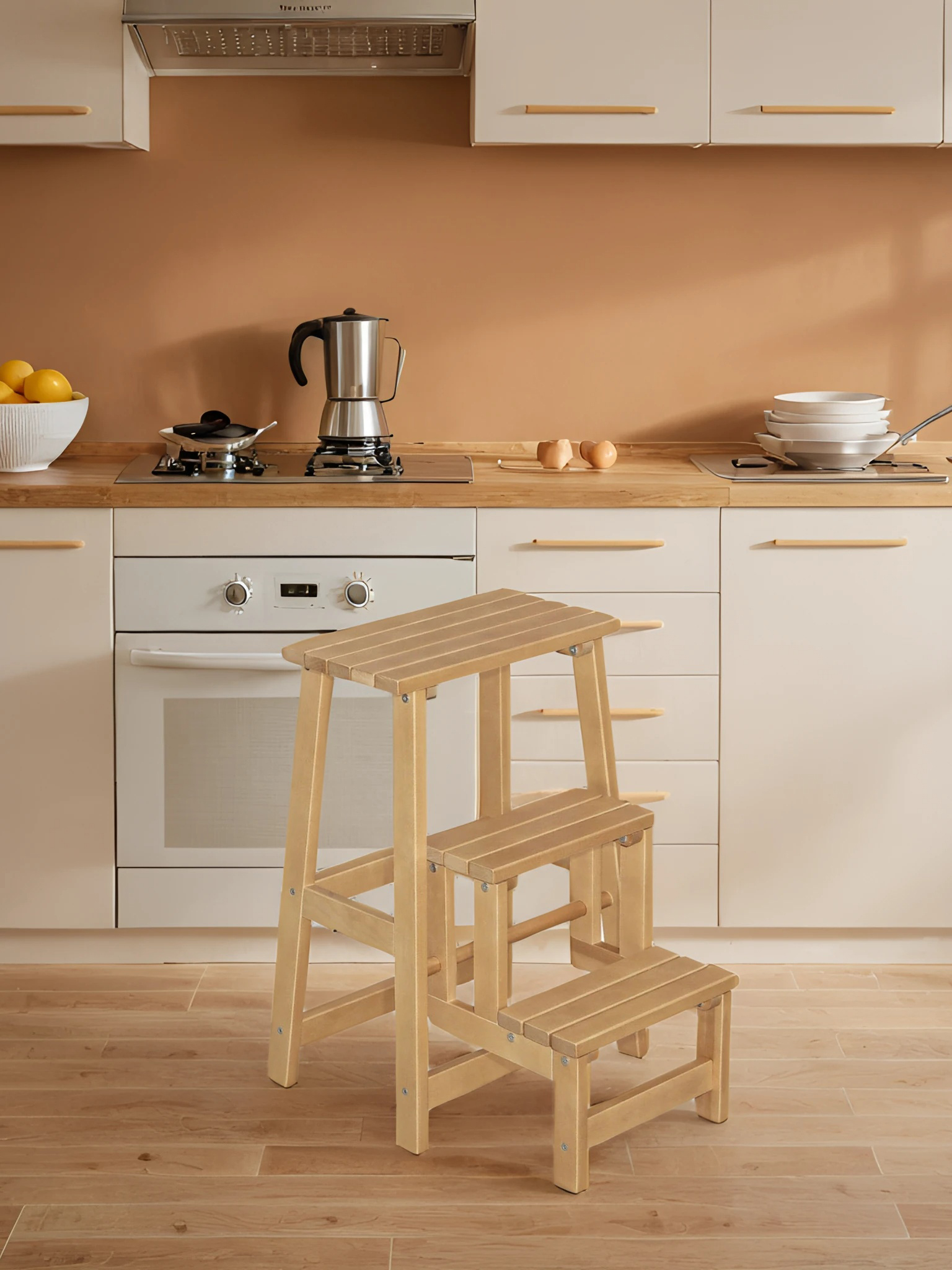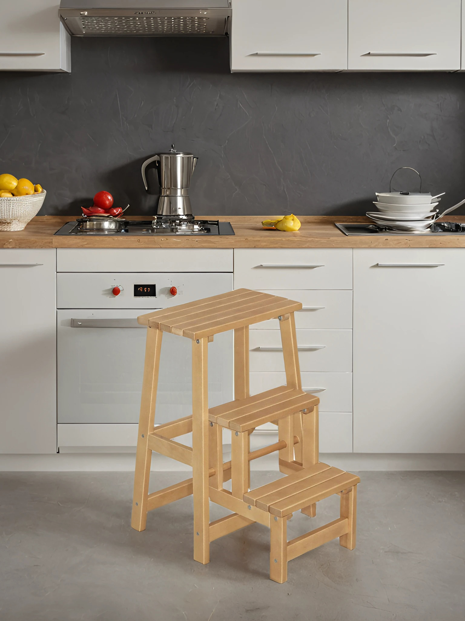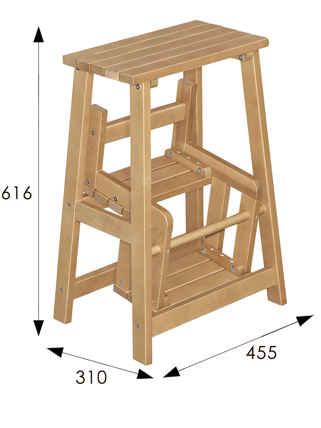 Высокий табурет (обратите внимание на высоту сиденья в характеристиках), одновременно и небольшая стремянка на три ступени. Вещь незаменимая в современных кухнях. Высоко расположенные вместительные навесные ящики часто оказываются недоступными для домохозяек именно из-за высоты. Даже обычного табурета иногда не хватает для того, чтобы дотянуться до нужных вещей на верхних полках. Стремянка в разобранном виде позволяет достать рукой до потолка в квартире человеку даже не самого большого роста. В собранном виде – дополнительное место для сидения и не бросается в глаза. Несколько вариантов цветов позволяют подобрать наиболее подходящий в вашу кухню. Каркас из натурального дерева делает стремянку легкой и прочной. Отличное приобретение, может служить подарком хозяйке. Материалы: массив Упаковка: 61,5*33*10 см, 1 место Вес: 7,2 кг Цвет: бук, венге, лак, орех, снегХарактеристики