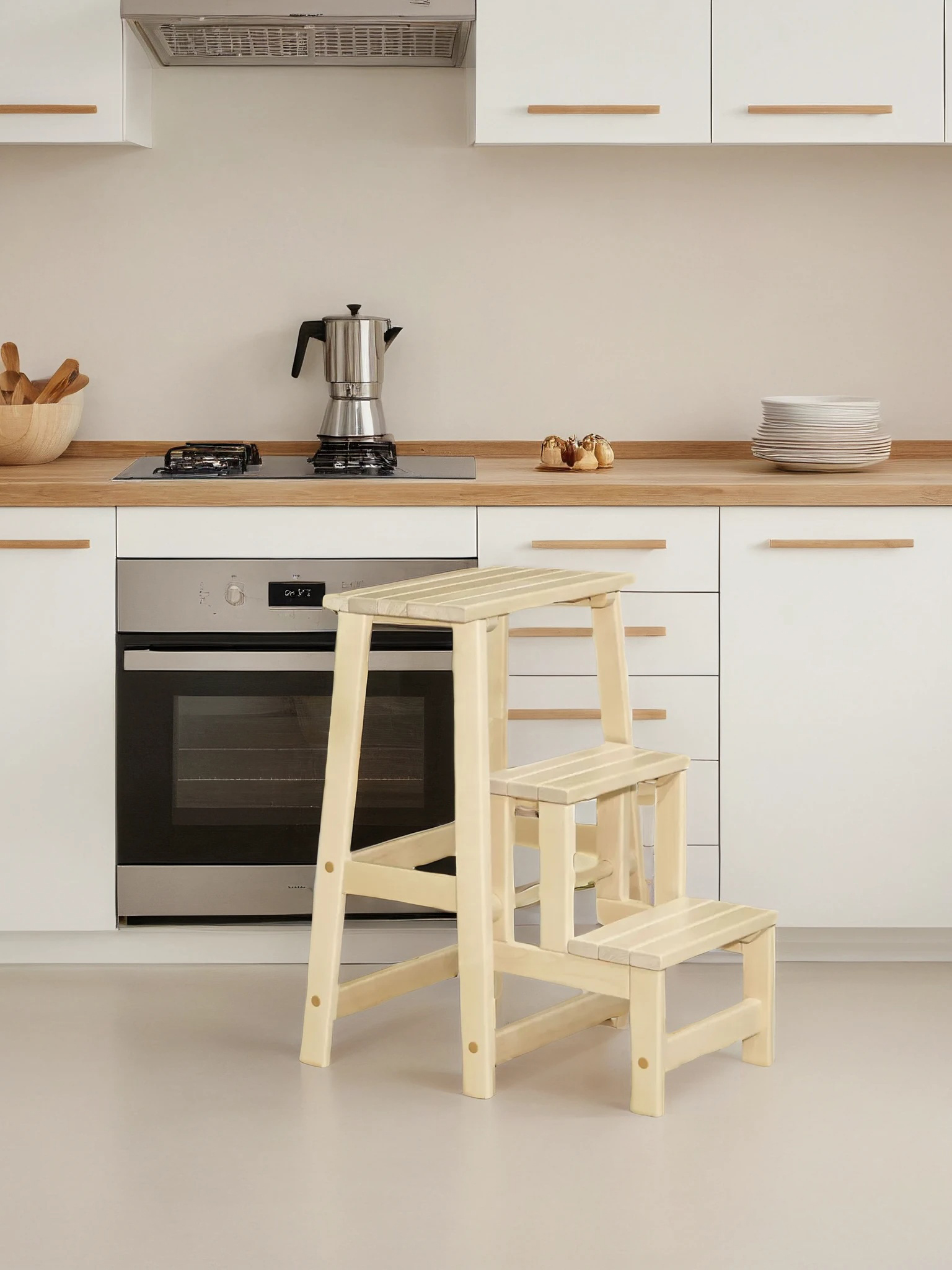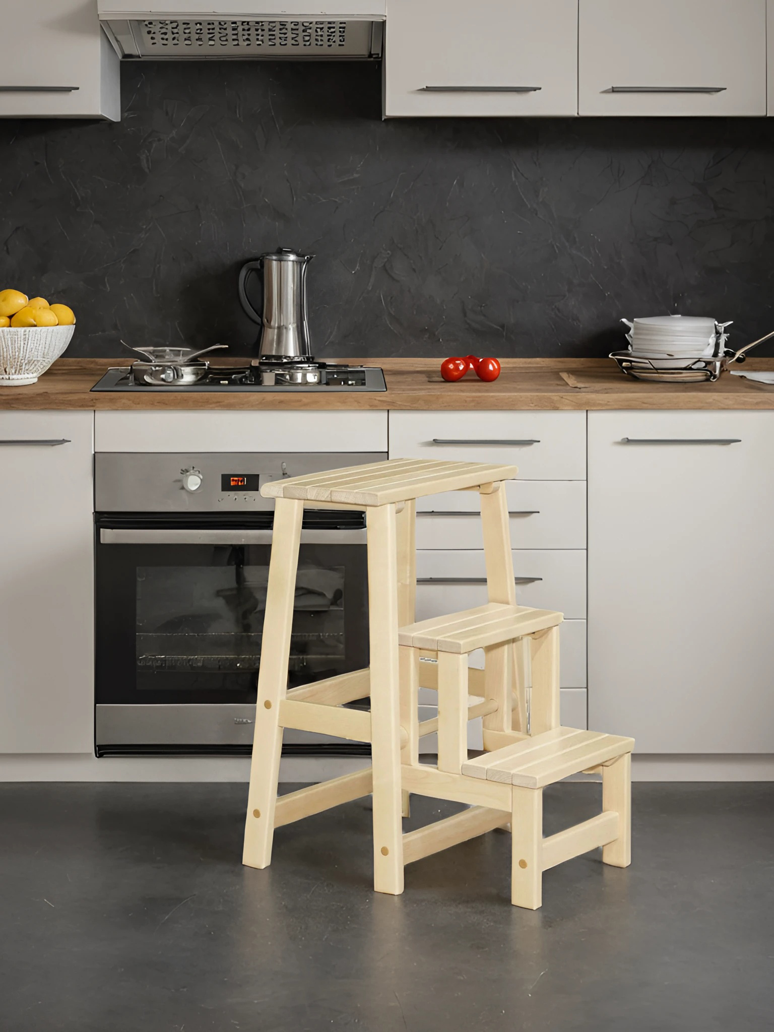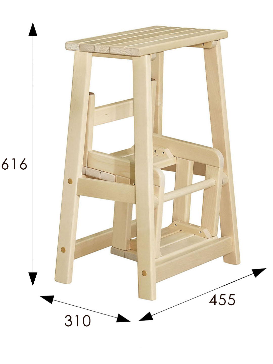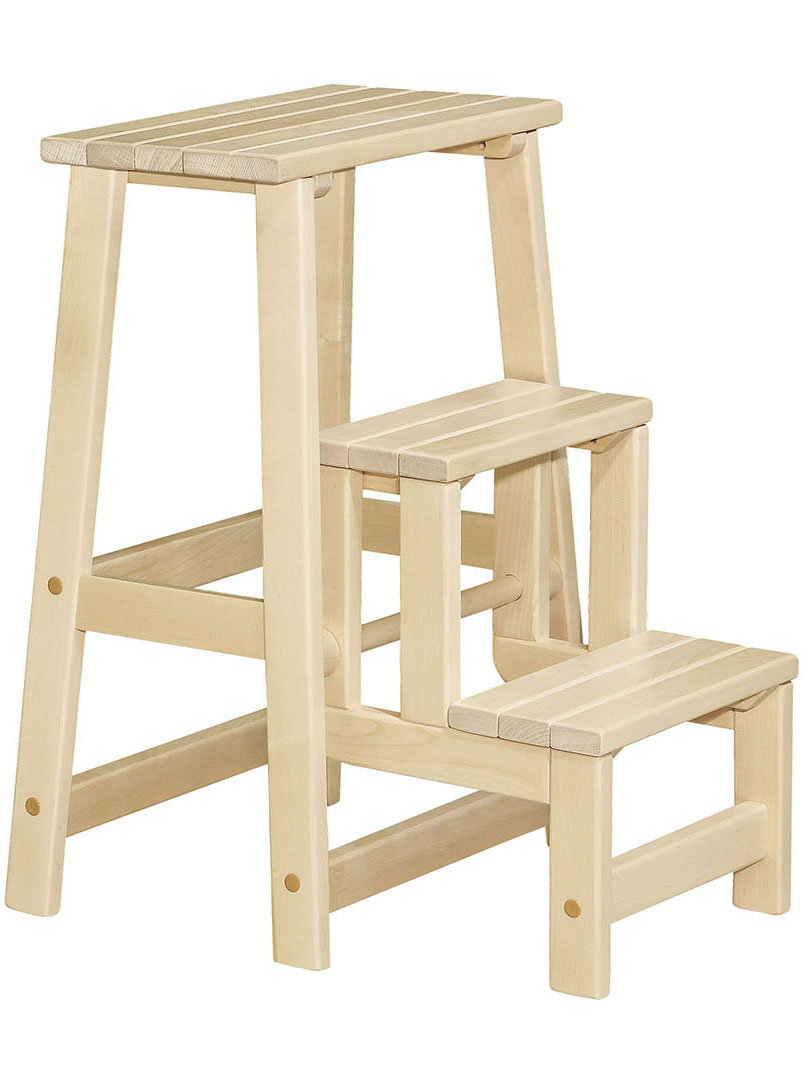 Высокий табурет (обратите внимание на высоту сиденья в характеристиках), одновременно и небольшая стремянка на три ступени. Вещь незаменимая в современных кухнях. Высоко расположенные вместительные навесные ящики часто оказываются недоступными для домохозяек именно из-за высоты. Даже обычного табурета иногда не хватает для того, чтобы дотянуться до нужных вещей на верхних полках. Стремянка в разобранном виде позволяет достать рукой до потолка в квартире человеку даже не самого большого роста. В собранном виде – дополнительное место для сидения и не бросается в глаза. Несколько вариантов цветов позволяют подобрать наиболее подходящий в вашу кухню. Каркас из натурального дерева делает стремянку легкой и прочной. Отличное приобретение, может служить подарком хозяйке. Материалы: массив Упаковка: 61,5*33*10 см, 1 место Вес: 7,2 кг Цвет: бук, венге, лак, орех, снегХарактеристики